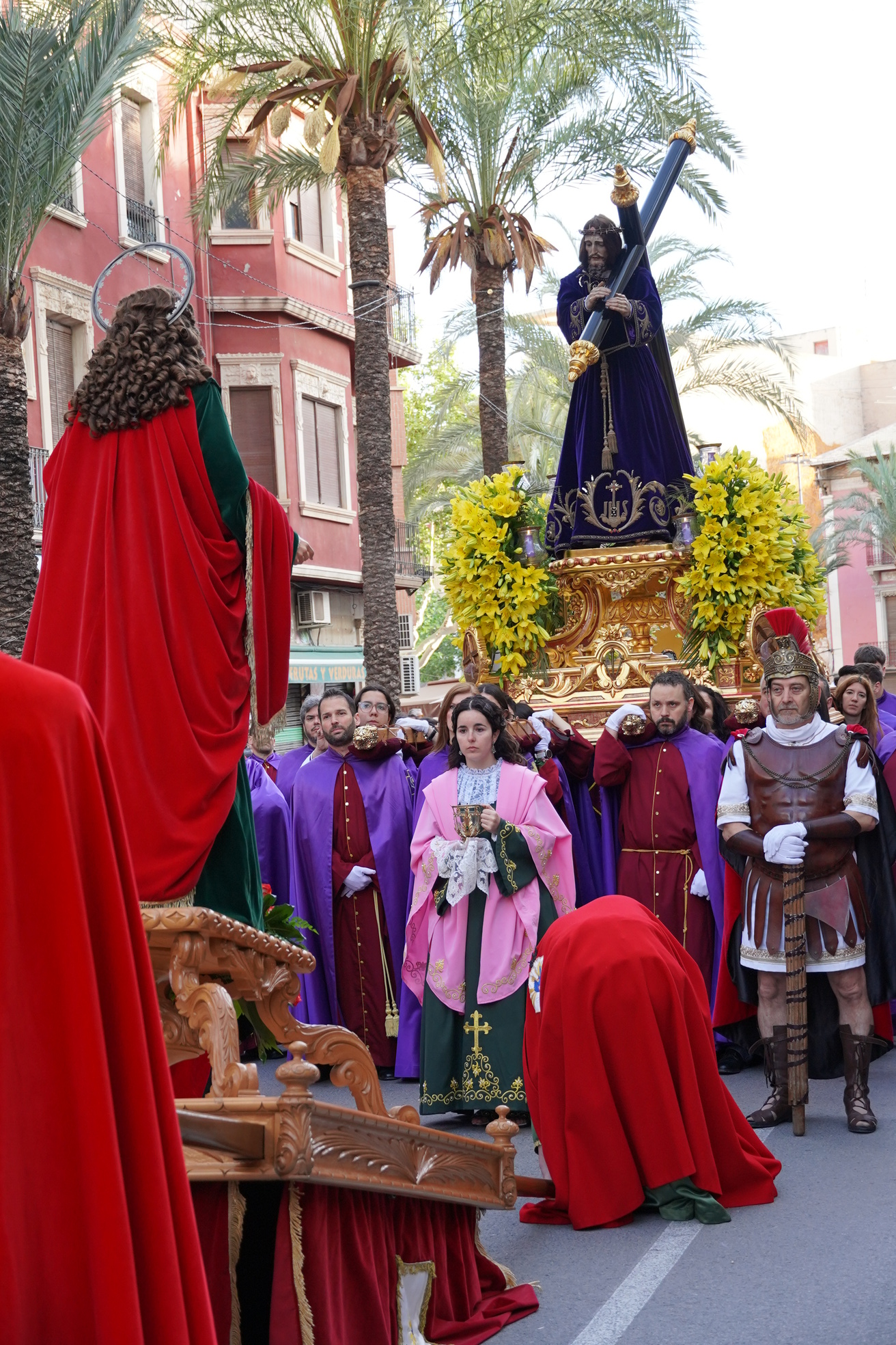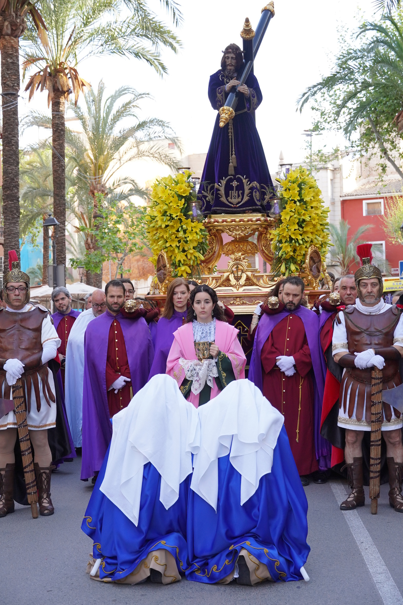 Su participación comienza el Jueves Santo durante la Misa Solemne, cuando realizan su primera reverencia ante el Santísimo. El Viernes Santo, en la Ceremonia del Encuentro y la Procesión del Camino del Calvario, la Magdalena acompaña a Jesús Nazareno, mientras las Marías lo hacen con la imagen de la Dolorosa. Esa noche, en la Procesión del Santo Entierro, la Magdalena acompaña a Cristo en el Sepulcro, y las Marías, acompañan a la Virgen de la Soledad. También, el Sábado Santo escenifican el acto de Sepultura de Nuestro Señor Jesucristo.
