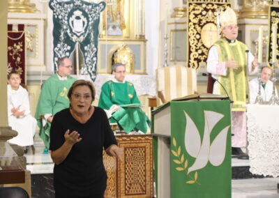 A continuación, los participantes en el encuentro acudieron a la Parroquia de San Vicente Ferrer donde el obispo de la Diócesis de Orihuela-Alicante, D. José Ignacio Munilla, ofició una misa solemne, que contó con las voces de la Masa Coral La Aurora y con la colaboración del Secretariado Diocesano de Sordos, que tradujo la eucaristía al lenguaje de signos.
