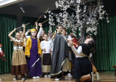 La jornada final del trigésimo Encuentro de Cofradías y Hermandades de Semana Santa de la Diócesis Orihuela-Alicante se abrió con una ponencia de José Manuel Díez Fuentes, historiador de la Universidad de Alicante, sobre ‘San Vicente Ferrer y la Semana Santa en El Raspeig’. Para seguir conociendo las tradiciones de la población, un grupo del alumnado de 5º de Primaria del colegio Miguel Hernández representado el Miracle de Sant Vicent ‘La dona endimoniada’.