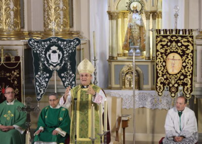 La conclusión del trigésimo primer Encuentro de Cofradías y Hermandades de Semana Santa de la Diócesis Orihuela-Alicante llegó el domingo 20 de octubre. La jornada de clausura comenzó con la misa solemne oficiada por el Obispo de la Diócesis, Mons. D. José Ignacio Munilla, en el templo de la Inmaculada. Una comida de hermandad en los salones de la Sociedad Cultural Casino de Torrevieja, con la asistencia de cofrades de una veintena de poblaciones, puso el punto de clausura. En este foro se dio a conocer la sede del próximo encuentro provincial, que tendrá lugar en Novelda, en otoño de 2025.