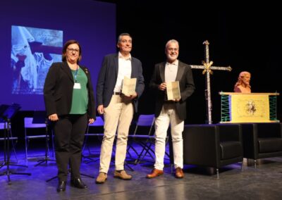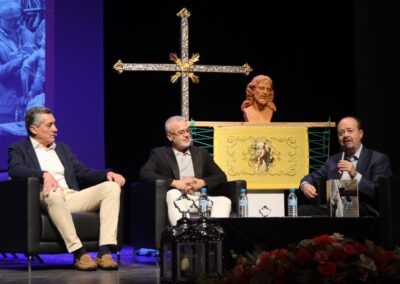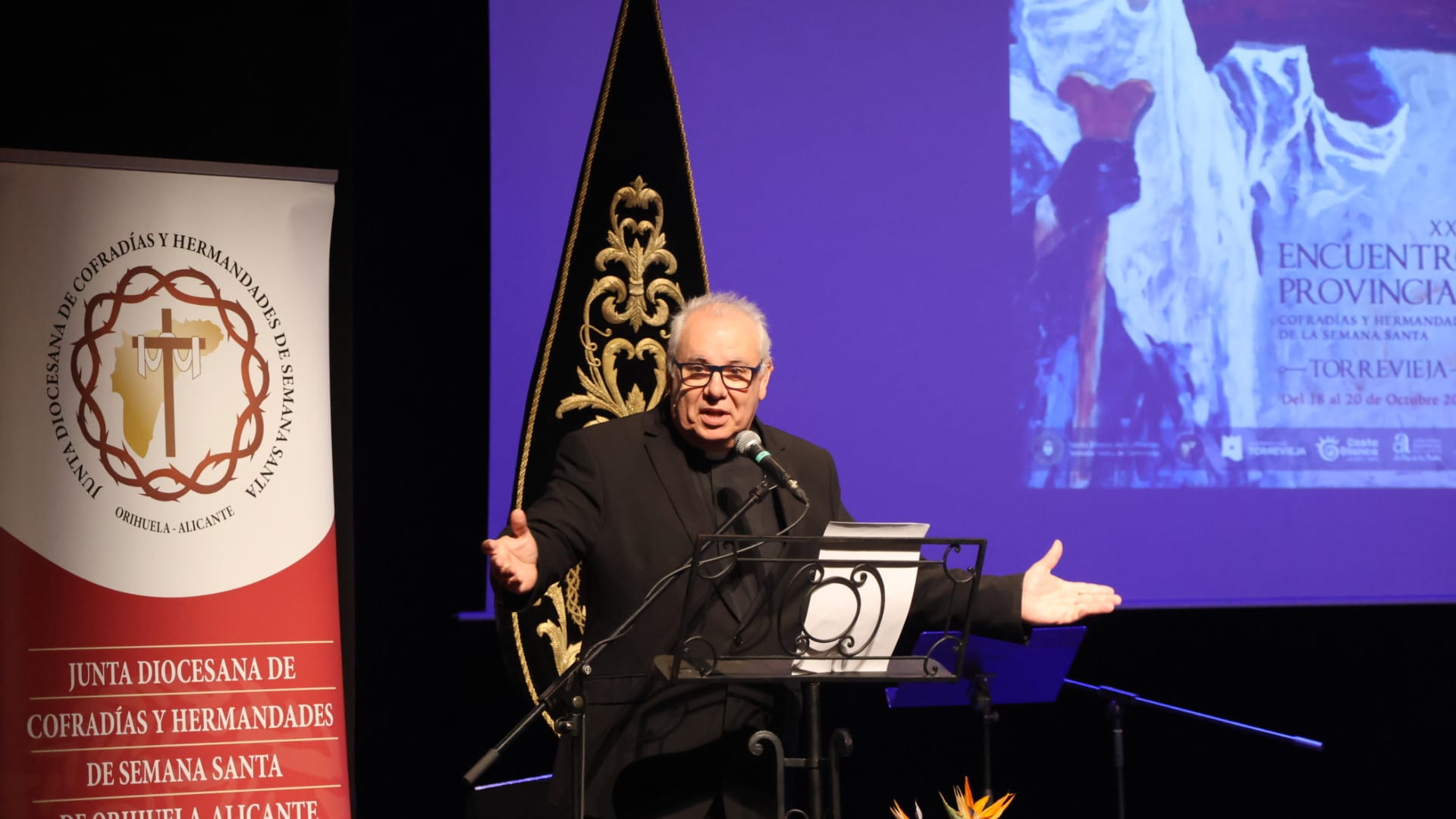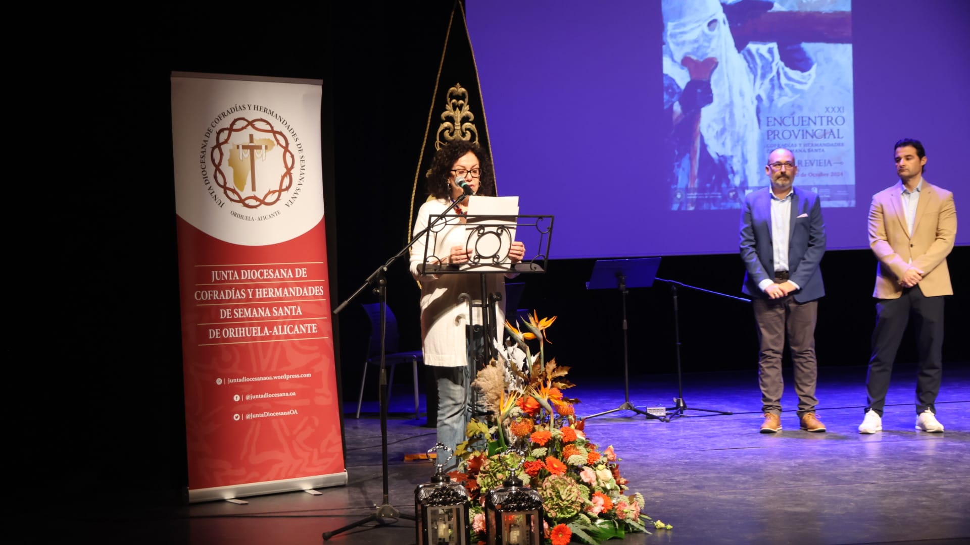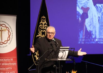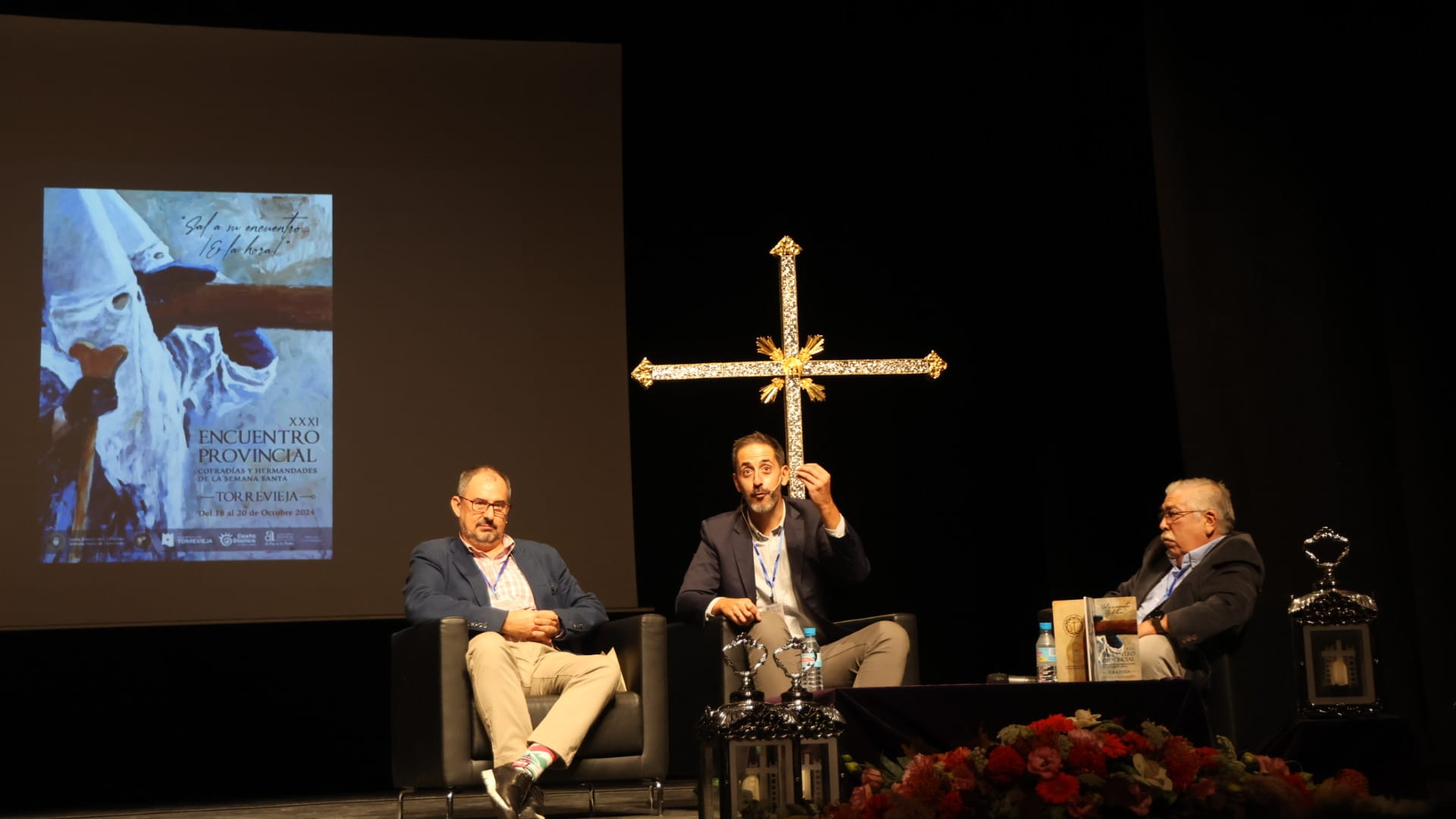 A continuación, Adrián Ballester Lozano hizo memoria del tercer Encuentro Provincial de Cofradías que tuvo lugar en Torrevieja en 1996. Tras un almuerzo solidario, se pasó a debatir sobre ‘Tradición y modernidad. La difusión de la Semana Santa y las cofradías en el siglo XXI’. El periodista sevillano de ABC, Mario Daza Olaya, y el periodista alicantino, José Manuel Caturla, asesor de comunicación de la Junta Diocesana de Semana Santa Orihuela-Alicante, moderados por Francisco Reyes Prieto abordaron cómo se puede comunicar y difundir más y mejor la Semana Santa en la sociedad actual.