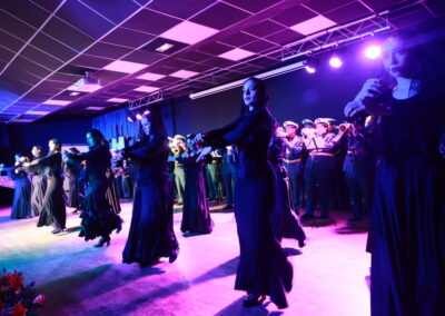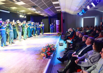 Tras la recepción y entrega de credenciales en los Salones Parroquiales y el desayuno en el Casino de Dolores, todos los participantes, acompañados por la Banda de Cornetas y Tambores San Pascual, de Dolores, se desplazaron hasta el Auditorio Municipal donde tuvo lugar el acto de inauguración, con la bienvenida por parte de las diferentes autoridades, visualización de unos videos sobre Dolores y su Semana Santa y la actuación de la Banda San Pascual y el Ballet de Carmen Simón, de Dolores.