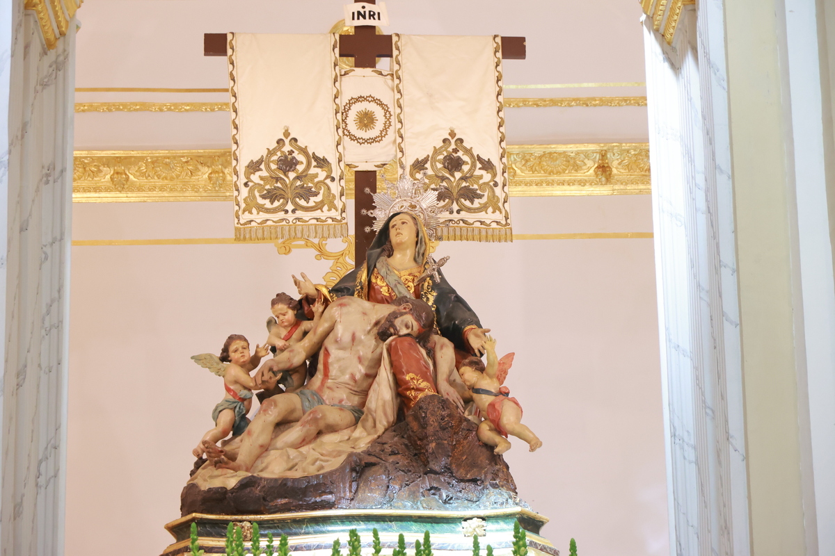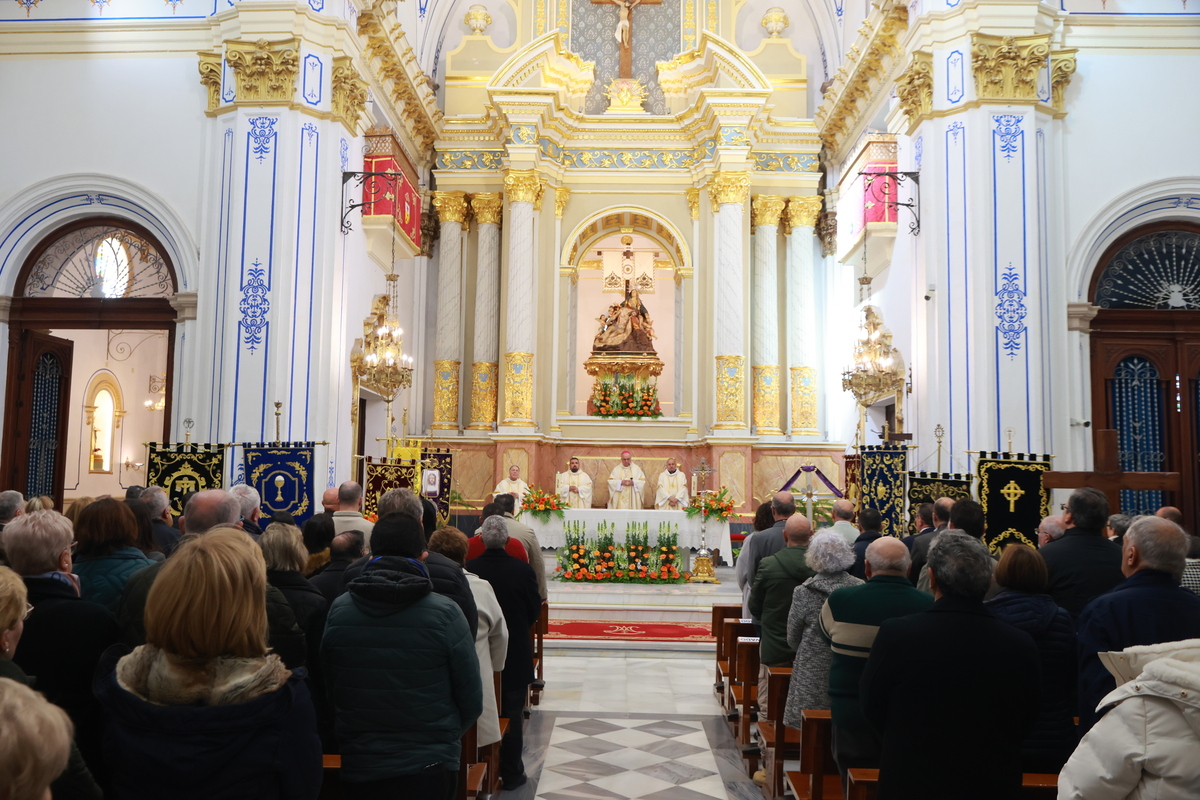 Con la Cruz Diocesana y los estandartes de las 10 cofradías y hermandades de Dolores abriendo paso, los asistentes se dirigieron al templo parroquial donde el Obispo Emérito D. Francisco Cases presidió la eucaristía.
