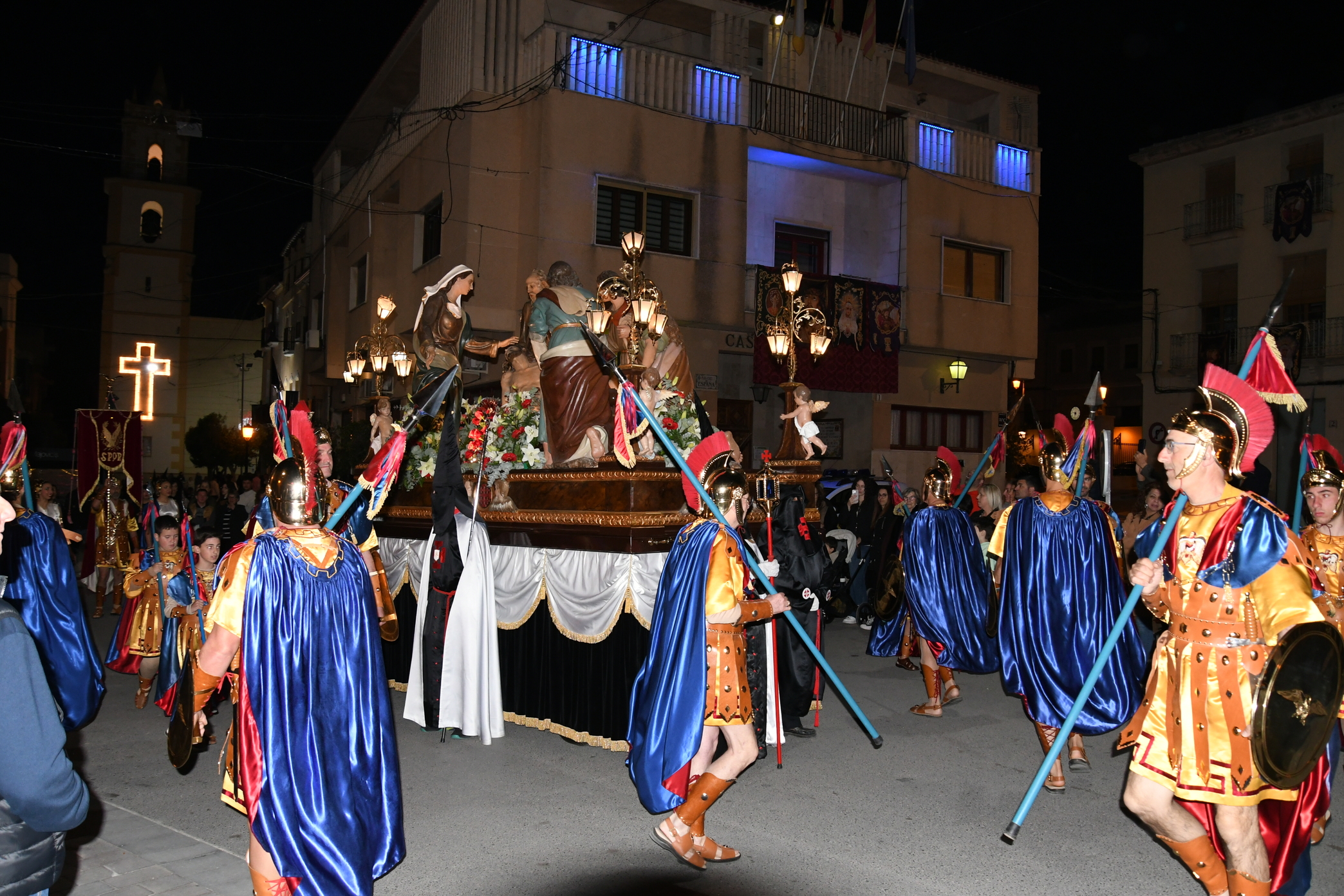 Es una Semana Santa muy participativa, con traslados y procesiones durante toda la Semana, en la que la mayoría de familias del pueblo están implicadas. Por nombrar alguna particularidad, el domingo de Ramos, sale la borrica y Jesús, con los Apóstoles en vivo, recitando las Profecías y cantando el Hosanna. La Centuria Romana realiza un espectáculo, denominado ‘El Remolinet’, digno de ver, en la Plaza del Ayuntamiento, con figuras como el Caragol y La Batalla, el Viernes Santo a mediodía. Y el Sábado Santo, en la misa de Resurrección los romanos caen al suelo, en el canto del Gloria.